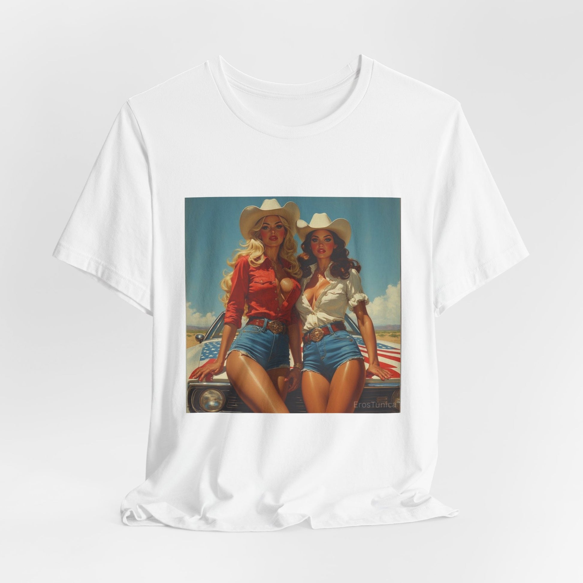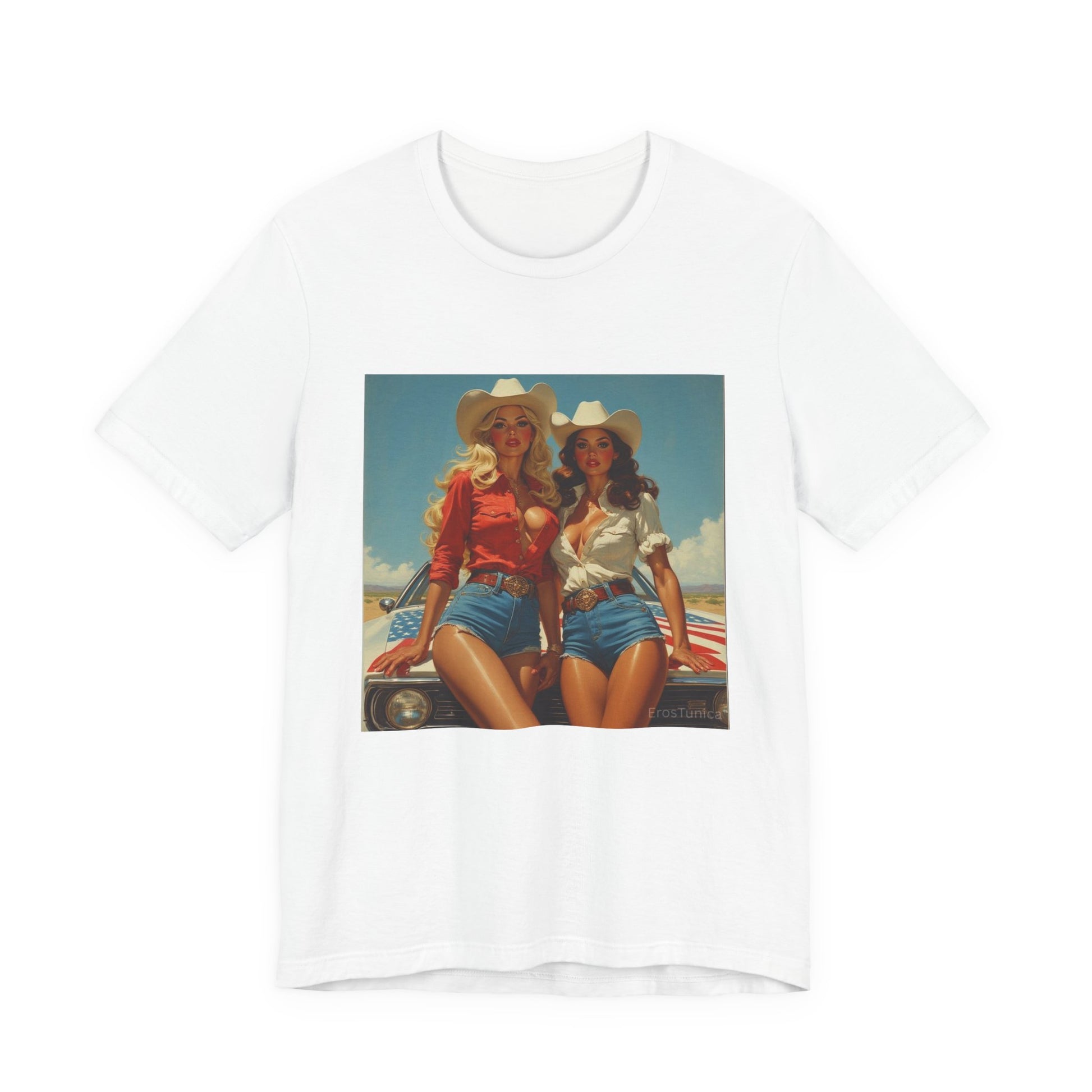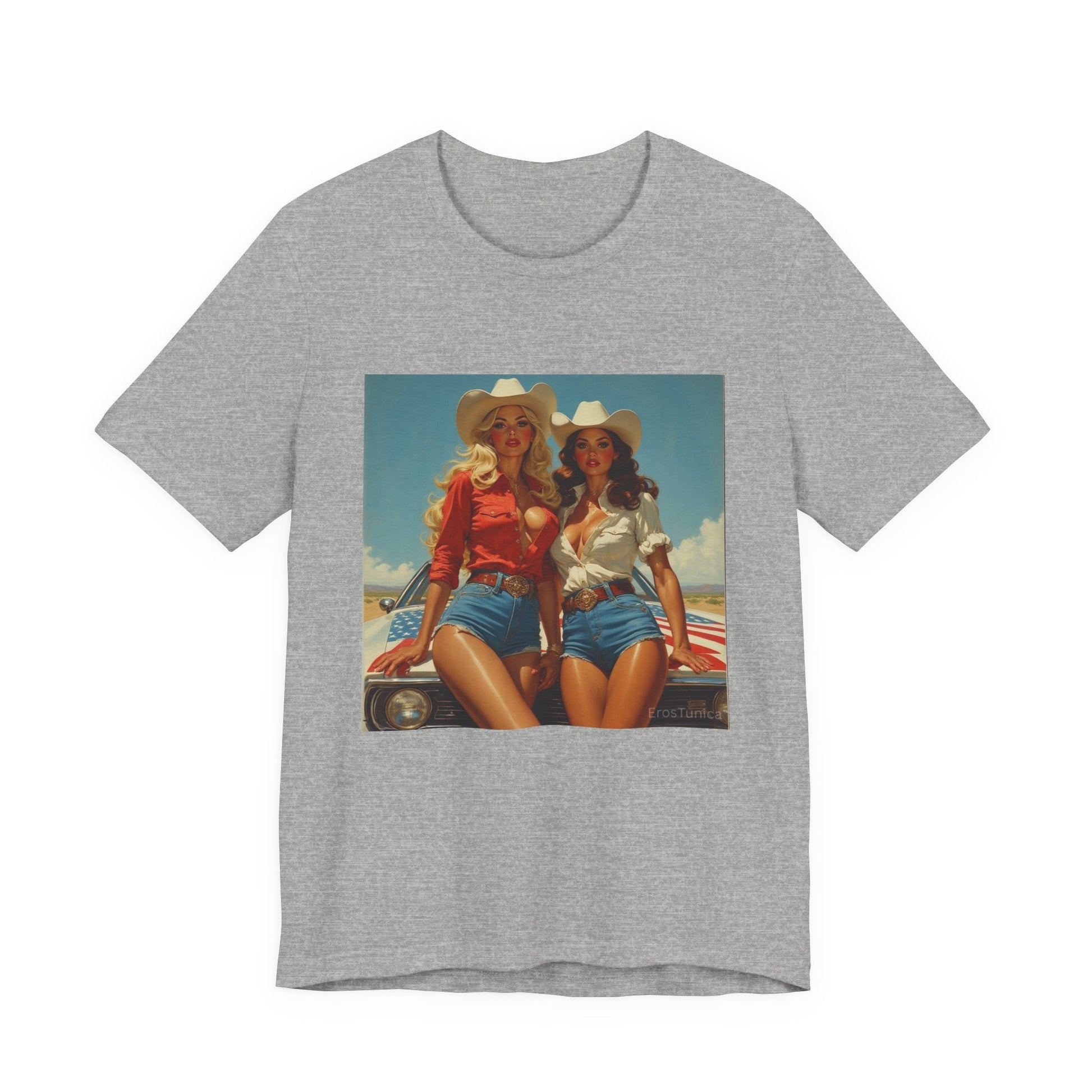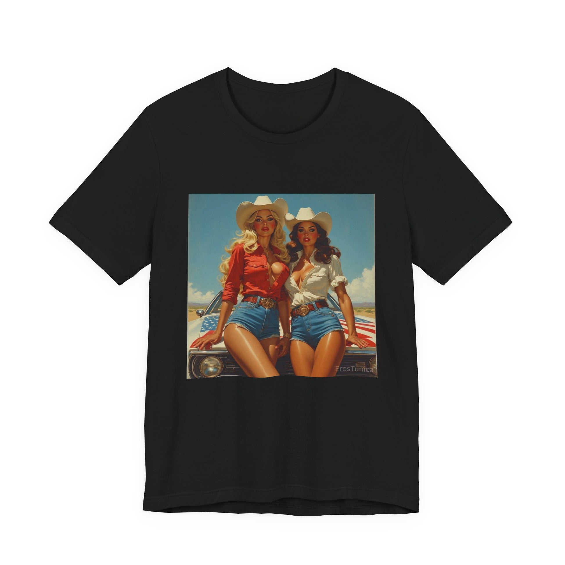 Star Spangled Sirens Cowgirl Pinup Tee — Retro Beauty meets muscle Graphic T-Shirt